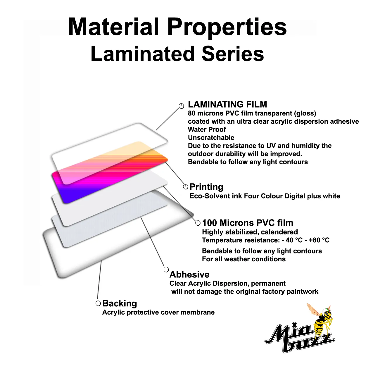 ◘ Design to fit over the rear right side engine cooling vents on all Vespa GTS models ◘ One (1) - High quality Laminated Decal ◘ Thickness 180 microns - (0.18mm - 0.00708inc). ◘ Full coloured in High Gloss finish.