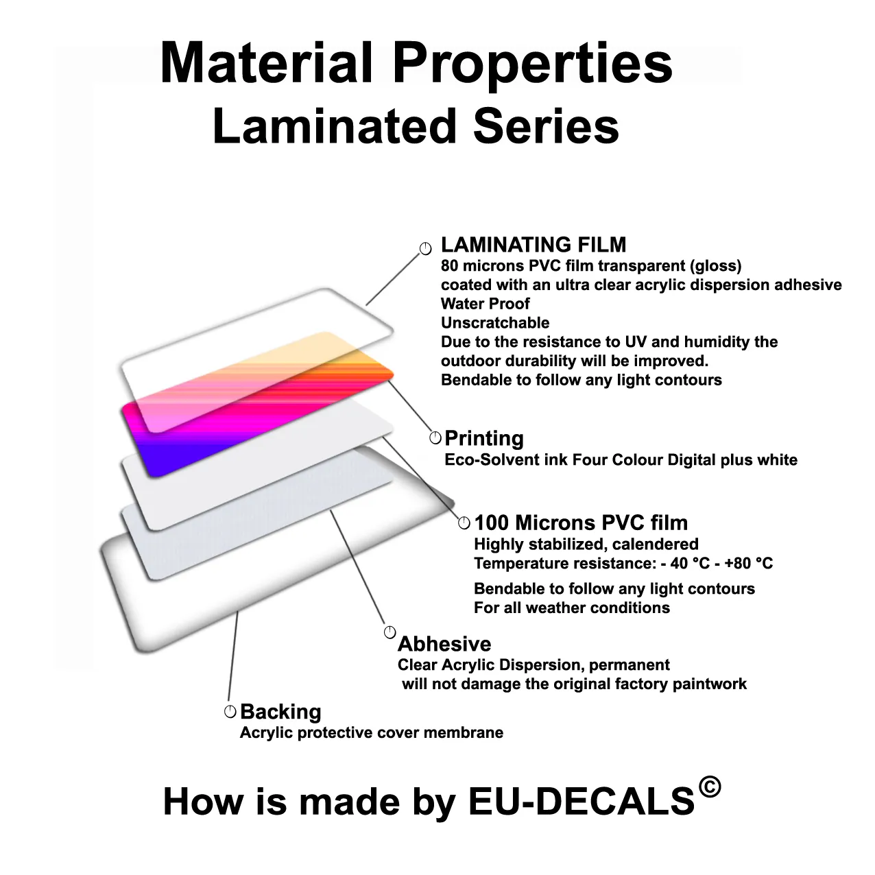 · This is a 180 microns - (0.18mm - 0.00708inc) thick bendable Vinyl High quality product with laminating film top coat and self-adhesive backing